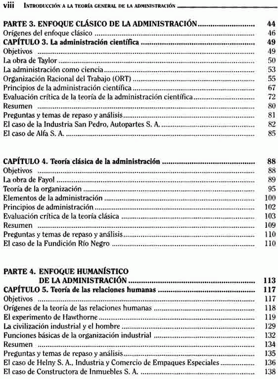 Contenido: Parte 1. Introducción a la Teoría general de la administración. -- Capitulo 1. La administración y sus perspectivas. -- Parte 2. Los orígenes de la administración. --Capitulo 2. Antecedentes históricos de la administración. -- Parte 3. Enfoque clásico de la administración. -- Capitulo 3. La administración científica. -- Capitulo 4. Teoría clásica de la administración. -- Parte 4. Enfoque humanística la administración. -- Capitulo 5. Teoría de las relaciones humanas. -- Capitulo 6. Implicaciones de la teoría de las relaciones humanas. -- Parte 5. Enfoque neoclásico de la administración. -- Capitulo 7. Teoría neoclásica de la administración. -- Capítulo 8. Implicaciones del enfoque neoclásica: Tipos de organización. -- Capitulo 9.Implicaciones del enfoque neoclásico: Departamentalizaciön. -- Capitulo 10. Enfoque neoclásico: Proceso administrativo. -- Capitulo 11. Administración por objetivos (APO). -- Parte 6. Enfoque estructuralista de la administración. -- Capitulo 12. Modelo burocrático de organización. -- Capitulo 13. Teoría estructuralista de la administración. -- Parte 7. Enfoque del comportamiento de la administración. -- Capitulo 14. Teoría del comportamiento en la administración. -- Capitulo 15. Teoría del desarrollo organizacional(DO). -- Parte 8. Enfoque sistemático de la administración. -- Capitulo 16. Cibernética y administración. -- Capitulo 17. Teoría matemática de la administración. -- Capitulo 18. Teoría de sistemas. -- Parte 9. Enfoque situacional de la administración. -- Capitulo 19. Teoría situacional. -- Bibliografía. -- Indice onomástico. -- Indice analítico.Bibliogrfia