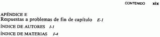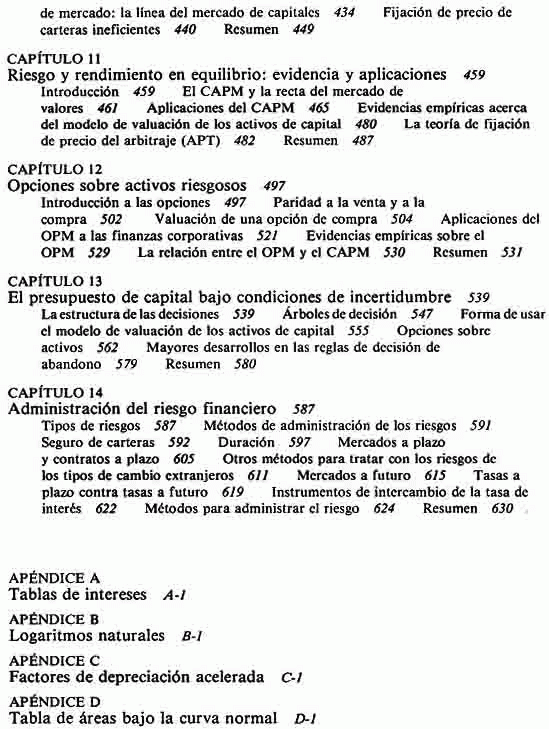 Bibliogrfía de la pagina 637-638 / Incluye apéndice A. Tablas de interés / Apéndice B. Logaritmos naturales. / Apéndice C-1 cuadro de los factores de depreciación acelerada por el MCRS. / Apéndice C-2./ Cuadros de factores de depreción acelerada anteriores al MACRS. / Apéndice D. cuadros de áreas bajo la curva normal. / Apéndice E. respuestas a los problemas selectas de fin de capitulo.