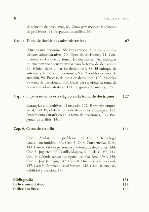 Joaquín Rodríguez plantea a los lectores que la toma de decisiones tiene como base la solución de problemas administrativos, y dedica parte de este libro al análisis de los mismos, con el fin de orientar al futuro administrador, y al que ya esta en funciones, acerca del proceso que implica la toma de decisiones.