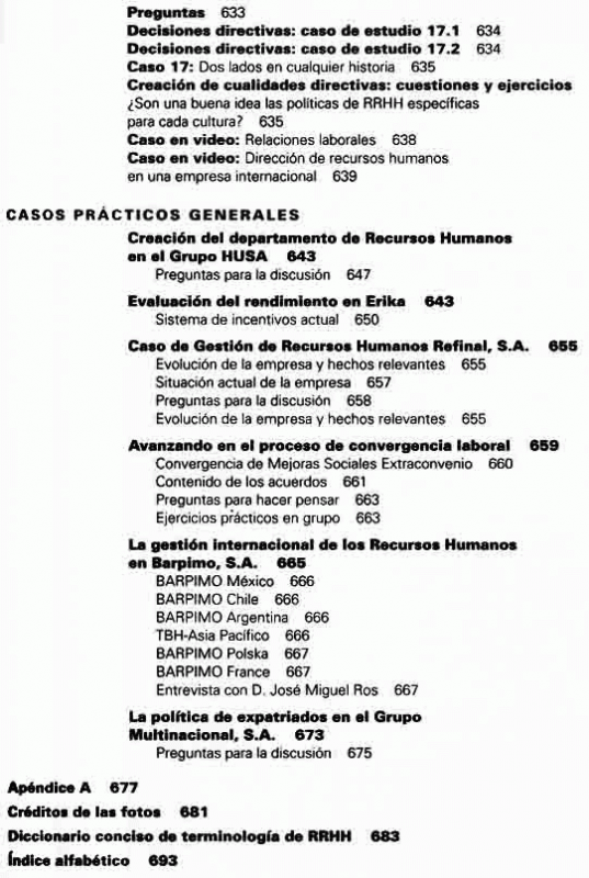 Incluye apéndices / Créditos de las fotos / Diccionario conciso de la terminología de RR.HH /