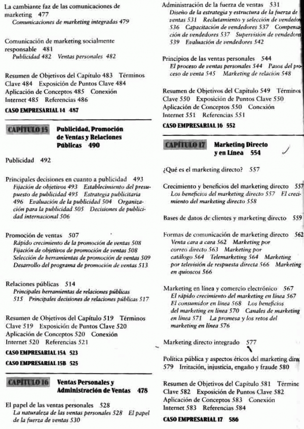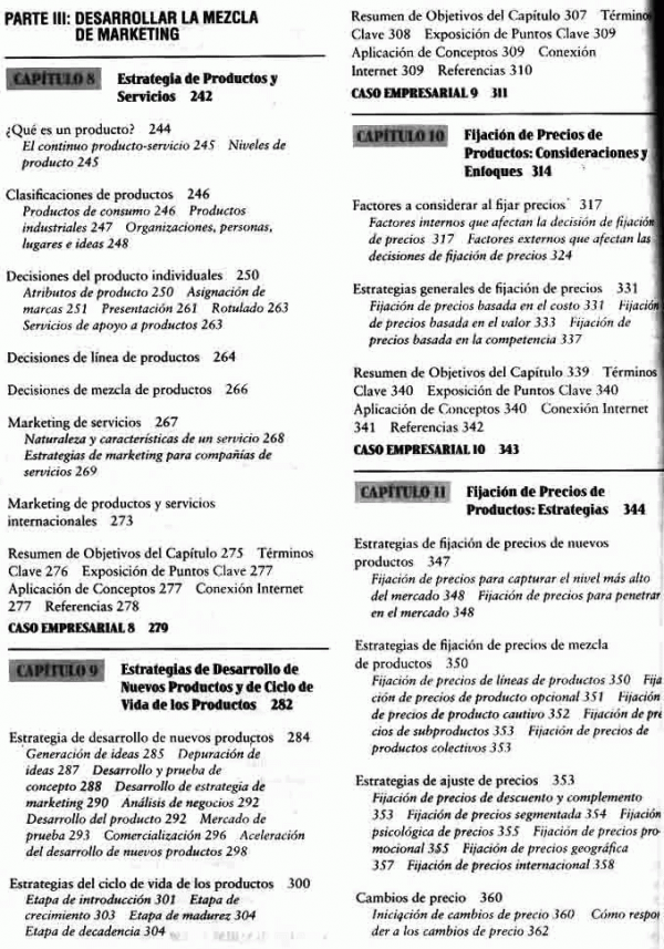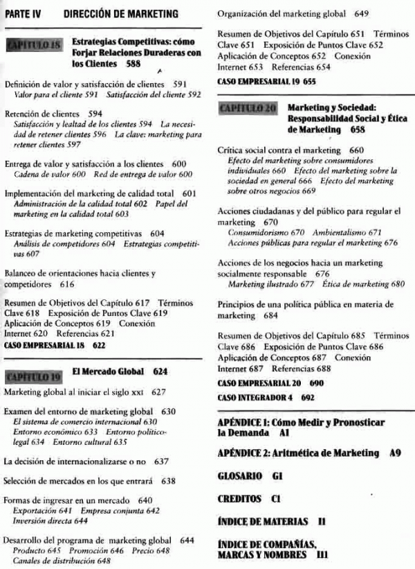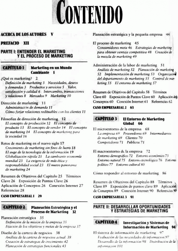 El texto ofrece abundantes ejemplos prácticos y aplicaciones , que muestran las principales decisiones que los gerentes de marketing enfrentan en su lucha por balancear los objetivos y recursos de la organización, por una lado, y las necesidades y oportunidades del mercado.