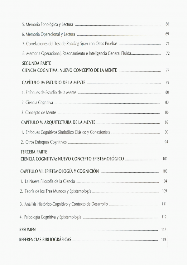 Este libro desarrolla tres aspectos importantes relacionados con la ciencia cognitiva, que constituyen las partes esenciales de esta obra, memoria operacional, ciencia cognitiva,estudios epistemológicos.