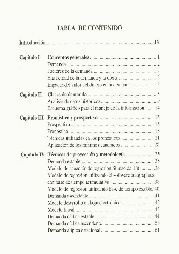 ¿Qué tan cerca estamos de nuestro consumidor o de nuestro posible cliente, ¿Conocemos sus necesidades con respecto a los servicios o productos que genera nuestra organización, ¿Tenemos una respuesta rápida para cubrir sus inventarios,¿Es nuestro proceso el más flexible, ¿Nuestros niveles de inventario son los más adecuados,¿Los gastos vs ingresos generados por nuestro sistema nos indican si estamos cumpliendo con la misión de ganar dinero, ¿Nuestro cliente confía plenamente en nuestras capacidades de reacción ,¿El manejo de la información es el más confiable, utiliza las técnicas adecuadas,¿La planeación de la producción asegura el éxito de la gestión. Este libro pretende ser un manual de aplicación para que el empresario o ejecutivo de una organización pueda establecer comparaciones con las diferentes técnicas de proyección y software estadístico.Los temas tratados a través de cada capítulo expresan las situaciones que viven las organizaciones y su permanente búsqueda de direccionadores que le permitan estar ligadas estrechamente con sus clientes.Este libro pretende ser un manual de aplicación para que el empresario o ejecutivo de una organización pueda establecer comparaciones con las diferentes técnicas de proyección y software estadístico.Los temas tratados a través de cada capítulo expresan las situaciones que viven las organizaciones y su permanente búsqueda de direccionadores que le permitan estar ligadas estrechamente con sus clientes.Los temas tratados a través de cada capítulo expresan las situaciones que viven las organizaciones y su permanente búsqueda de direccionadores que le permitan estar ligadas estrechamente con sus clientes.