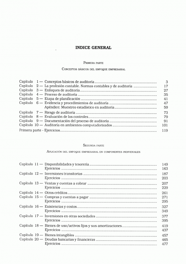 Desarrolla conceptos básicos de auditoría, incluyendo normas contables, enfoques, procesos, planificación, muestreo estadístico y riesgo. Estudia también la aplicación práctica del enfoque empresarial en componentes individuales y por último, analiza la conclusión e informes junto a otros temas vinculados.