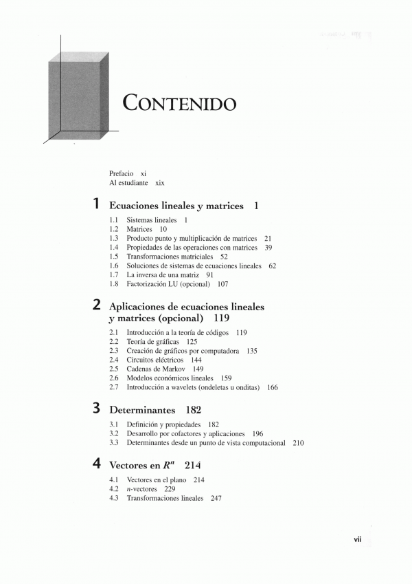 Este libro presenta una introducción de álgebra lineal y algunas de sus aplicaciones importantes. esta pasando para alumnos de nivel medio y avanzado.