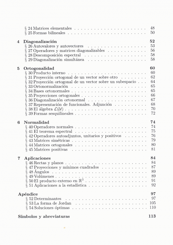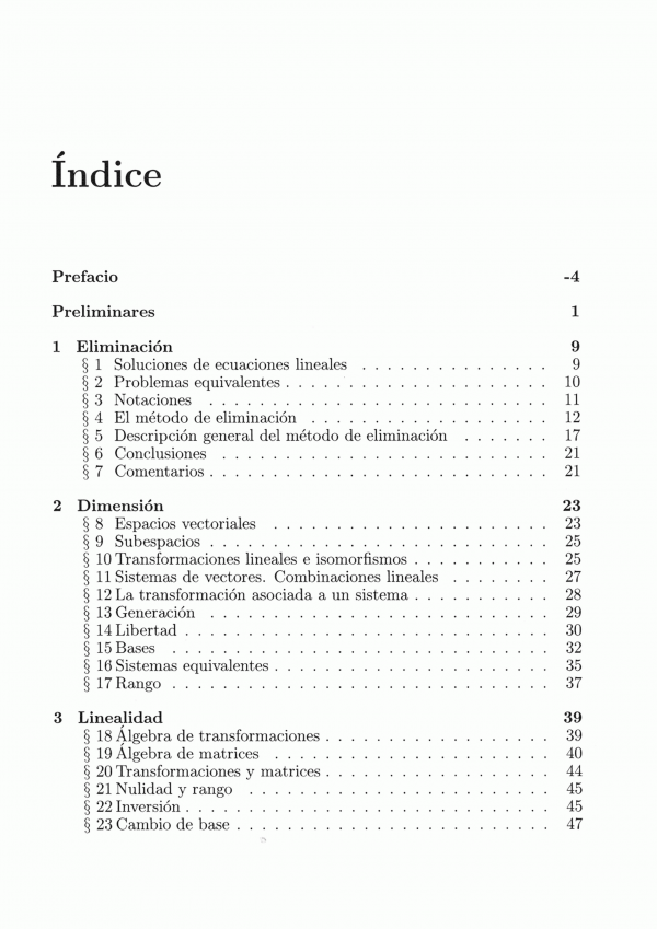 Esta es una obra introductoria, orientada a exponer nociones, procedimientos y resultados básicos. Su propósito no es el desarrollo completo y minucioso de una materia sino la organización de un trabajo autónomo de lectura, destacando los aspectos que hacen del álgebra lineal una materia privilegiada: