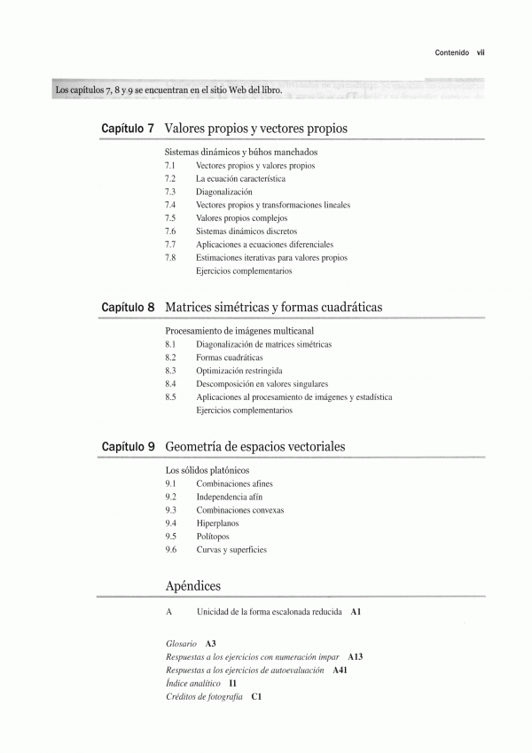 la estructura de la obra incorpora secciones especificas que ofrecen elementos para el aprendizaje tanto desde el punto de vista disciplinario del álgebra lineal como desde el enfoque de la competencias.