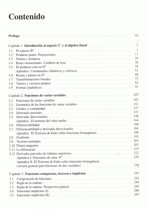 Este es un libro de cálculo diferencial e integral de funciones cuyo dominio y/o codominio son subconjuntos del espacio Rn.