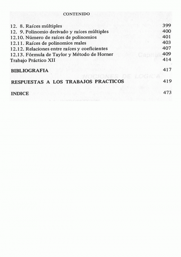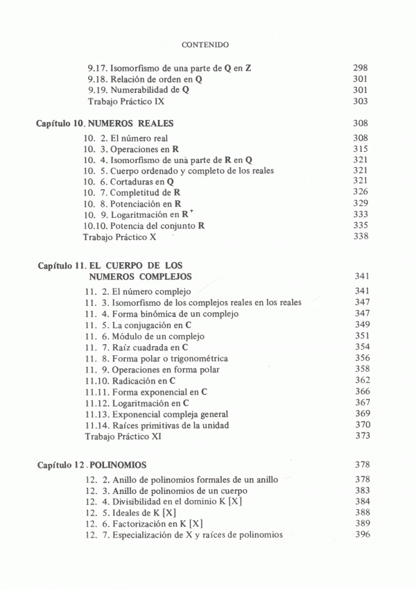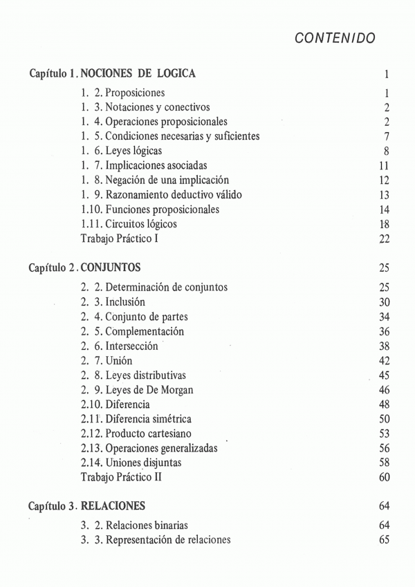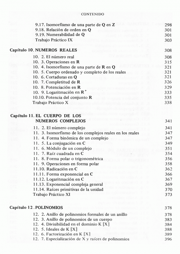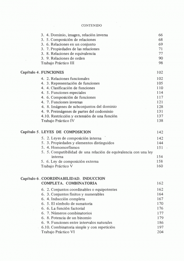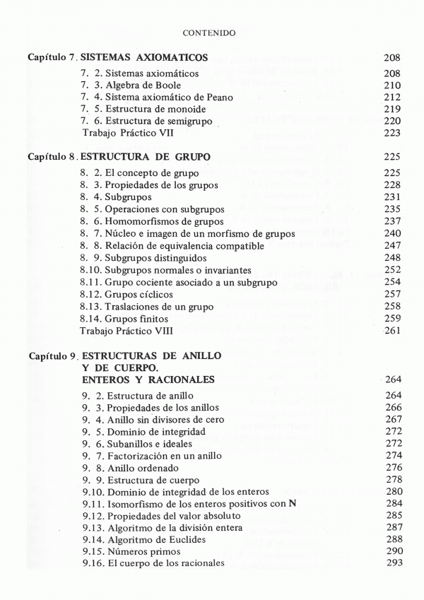 Aborda temas nociones de lógica, relaciones, funciones, leyes de composición. coordinabilidad, sistemas axiomáticos, estructura de grupo, estructuras de anillo y de cuerpo, enteros y racionales...