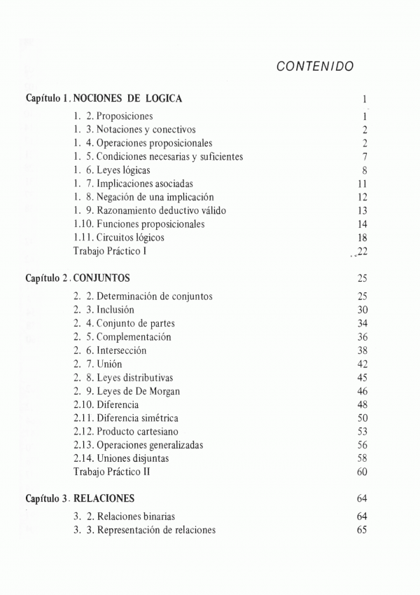 Este libro contiene : Proposiciones, conjuntos, relaciones, funciones, leyes de composición, estructura de grupo, coordinabilidad, estructuras de anillo y cuerpo, números reales, el cuerpo de los números, polinomios.