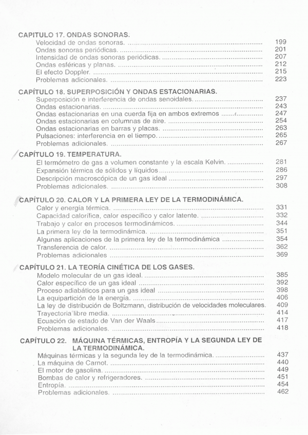 Esta obra que hacen un total de aproximado 2400 problemas resueltos, en 34 capítulos; abarca temas fundamentales de la física que se dividen en cuatro partes . La parte I (capitulo 1- 15 ) se abordan los temas de la mecánica newtoniana y de la física de fluidos; la parte II (capitulo 16 - 18) que comprende el movimiento ondulatorio y el sonido; la parte II (capitulo 19 - 22) considera el calor y la termodinámica y la parte IV (capitulo 23 - 34) comprende la electricidad y el magnetismo.