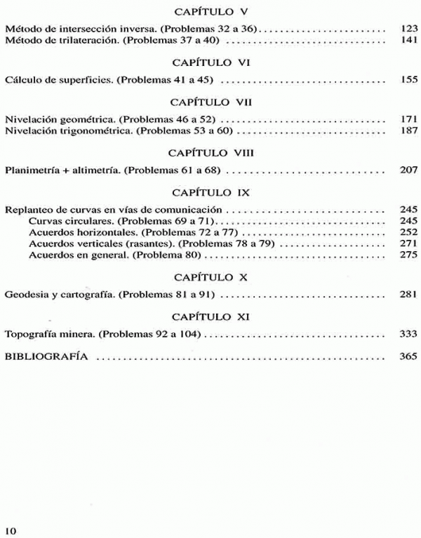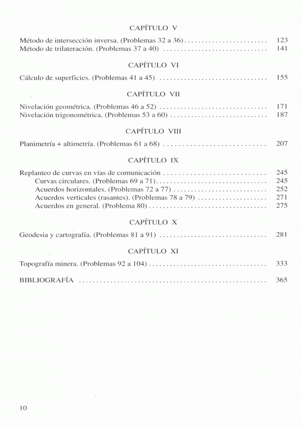 Finalmente, en los capítulos IX y XI se abordan problemas específicos de obra civil (replanteo de curvas en vías de comunicación) y minería.