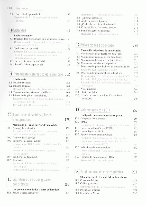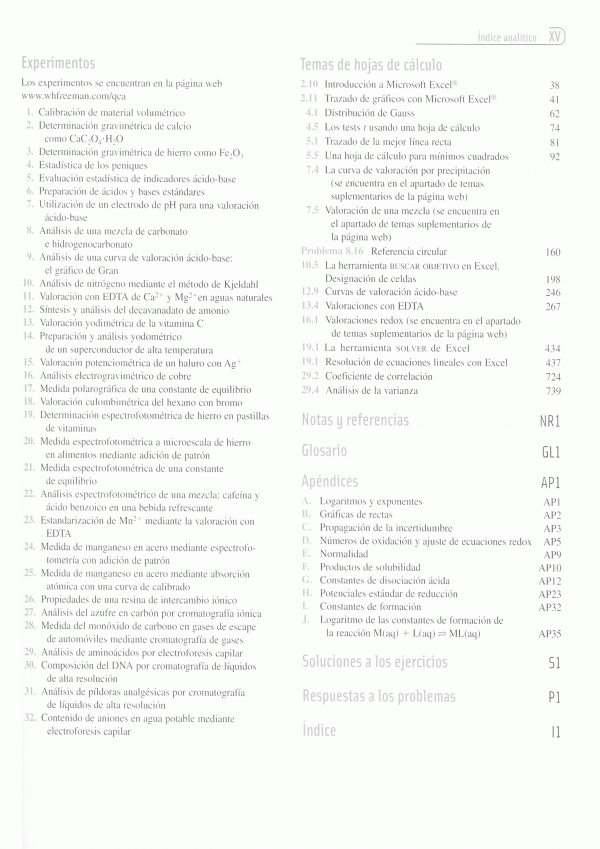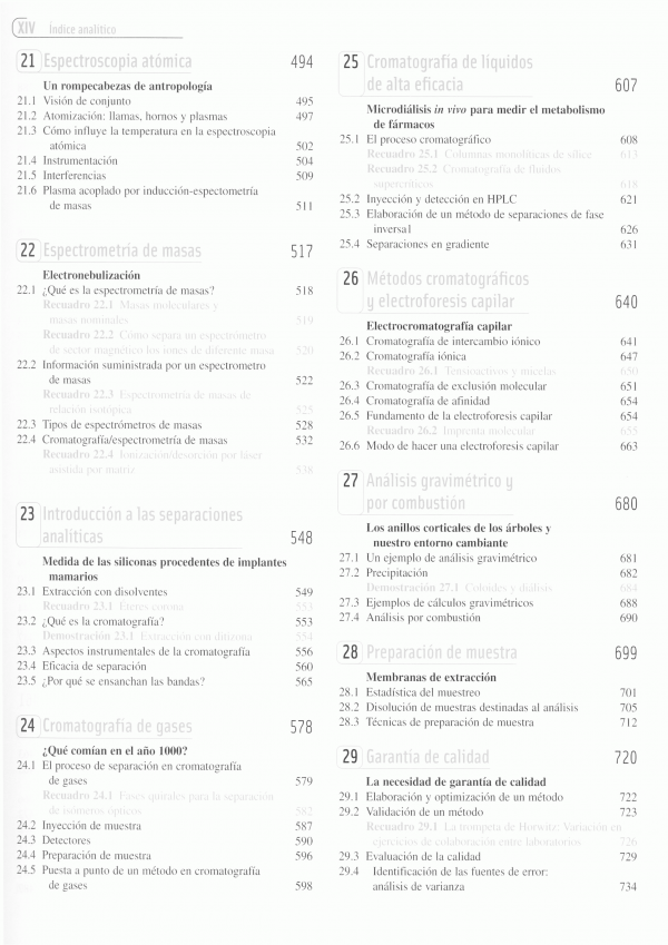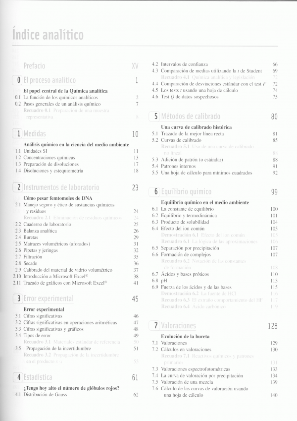 Esta obra además de la actualización y revisión de todo el libro, esta nueva edición introduce un capítulo independiente (el 22) sobre Espectrometría de masas y otro nuevo, el capítulo 29, sobre garantía de calidad. Los temas han sido introducidos e ilustrados con ejemplos concretos de interés y extraídos del mundo real. Una sucesión de recuadros a lo largo de cada capítulo amplían y explican puntos importantes que hay en el texto. Los ejemplos resueltos están pensados como una herramienta pedagógica importante para enseñar a resolver problemas. Las hojas de cálculo siguen teniendo gran importancia. En esta edición se introducen por primera vez algunas herramientas muy útiles de Microsoft Excel, como el trazado de gráficos, las funciones estadísticas, la resolución de ecuaciones.