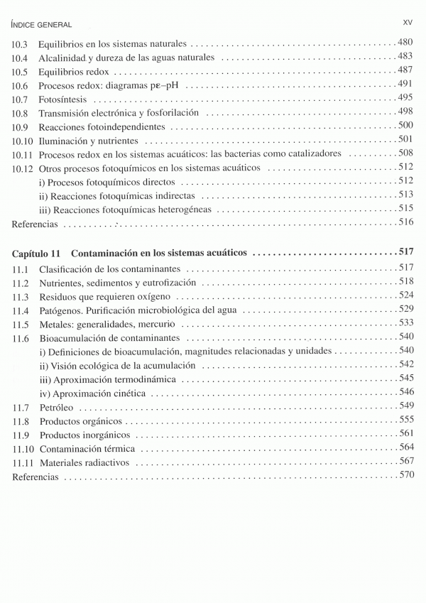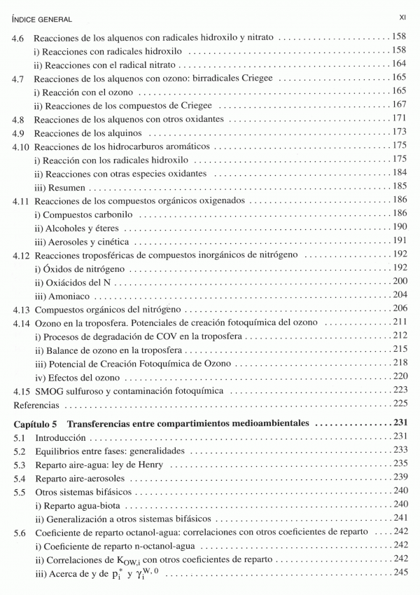 El presente libro constituye un valioso texto de licenciatura y postgrado en las asignaturas relacionadas con la química del medio ambiente que se imparten en diversas escuelas y facultades universitarias.A lo largo de los diversos capítulos se han ido introduciendo los necesarios fundamentos fisicoquímicos de los procesos de reacción más importantes en la Química Ambiental: termoleculares, fotoquímicos, heterogéneos, etc. Asimismo, se ha incluido información lo más amplia y veraz posible de los temas más actuales en investigación y desarrollo, para lo que se ha realizado un exhaustivo estudio bibliográfico. En este contexto, al final de cada capítulo se incluyen las correspondientes referencias bibliográficas. Otra característica es la inclusión de ejemplos que ilustran o aplican conceptos especialmente significativos.