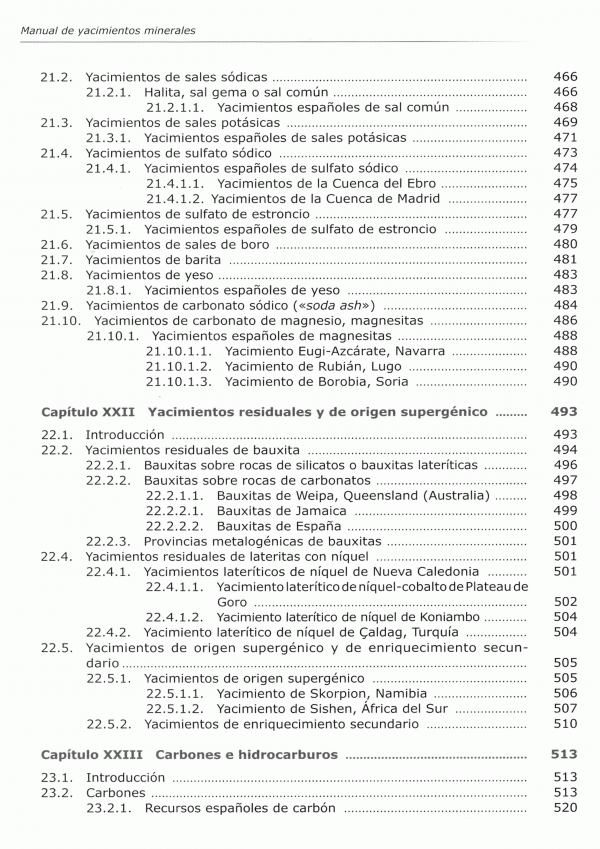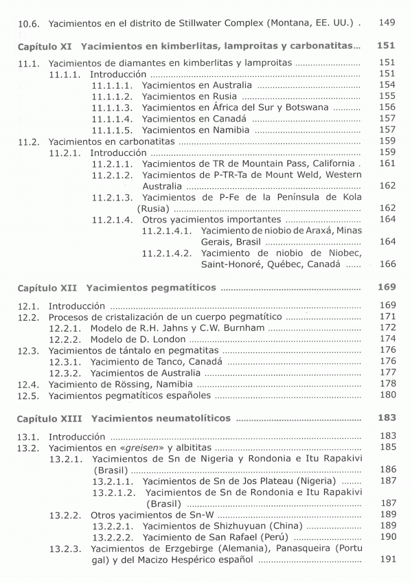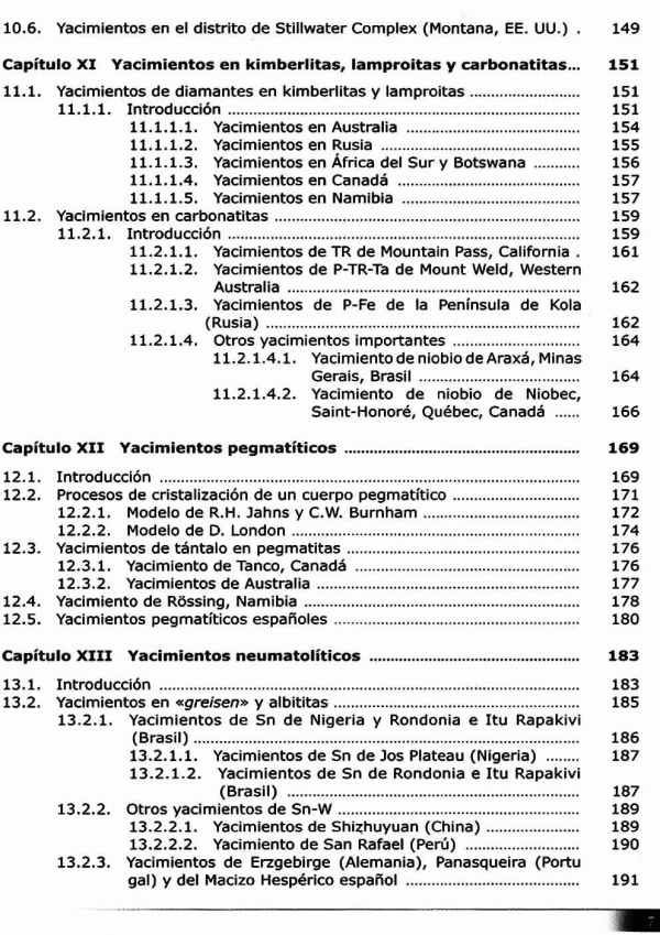 Se aborda la geología de los mismos sino también su mineralogía. Paragénesis minerales, mineralogía método de laboratorio, reservas, producciones datos estadísticos.