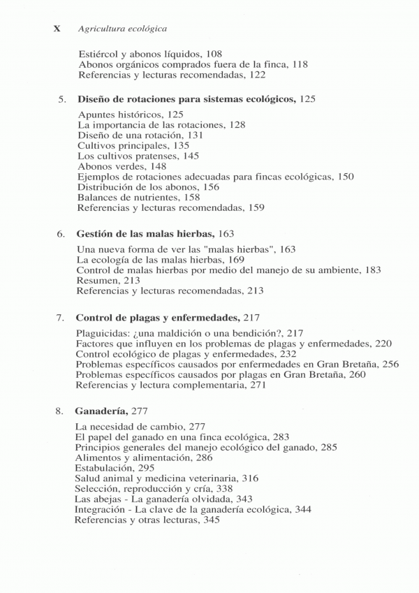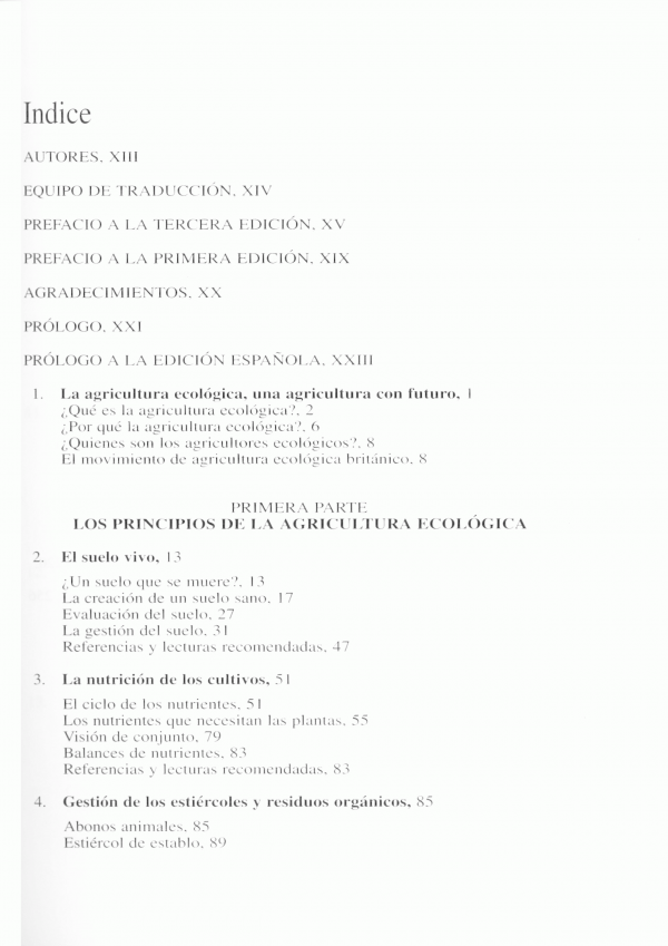Agricultura Ecológica aborda los principios de la agricultura ecológica y sus bases científicas, dejando claro que este tipo de agricultura esta basada, en primer lugar, en su confianza en los procesos biológicos y el manejo de las interacciones ecológicas, mas que en el uso de controles directos, sean estos químicos o de cualquier otro tipo. también por primera vez, se trata extensamente el manejo ecológico del ganado.