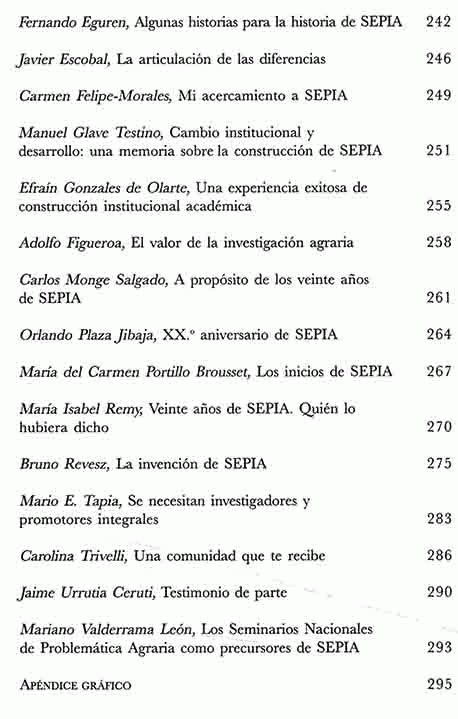 SEPIA 20 Años: Evaluación y Reflexiones / Seminario Permanente de Investigación Agraria [Impreso]