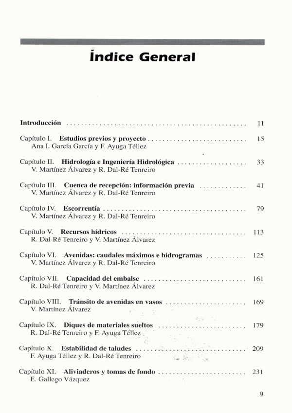 El libro, dividido en 13 capítulos, recoge lo necesario para el estudio, proyecto y construcción de los pequeños embalses de uso agrícola que utilizan las escorrentías superficiales de las cuencas de dimensiones discretas.