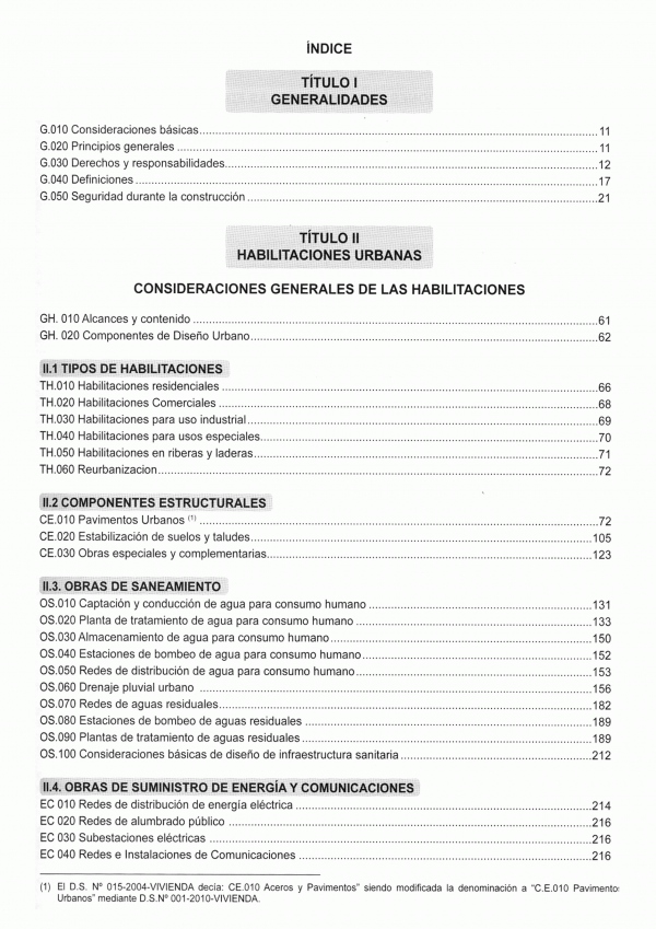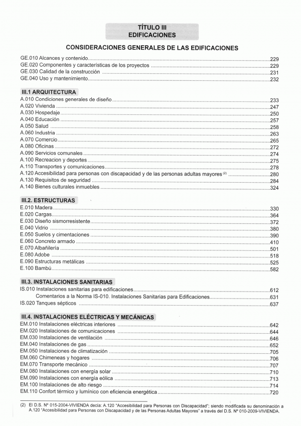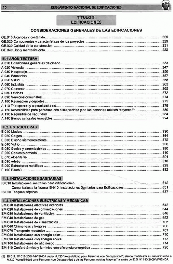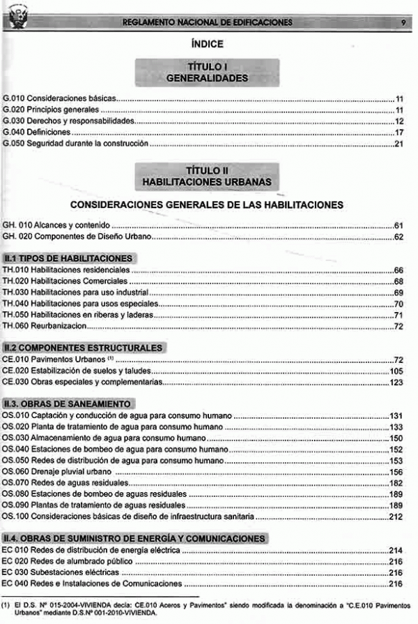 Este libro contiene la actualización del reglamento nacional de edificaciones que se han realizado mediante la inclusión modificación y/o adecuación de las normas legales emitidas por el Ministerio de Vivienda, Construcción y saneamiento.