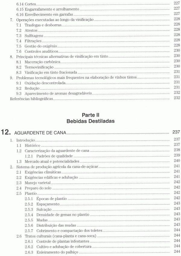 En este volumen, el lector encontrará tres capítulos sobre cachaça, tres sobre cerveza, cinco sobre vino y tres sobre bebidas alcohólicas indígenas, entre otros. Diez de sus capítulos se dedican a las bebidas alcohólicas derivadas de la uva.