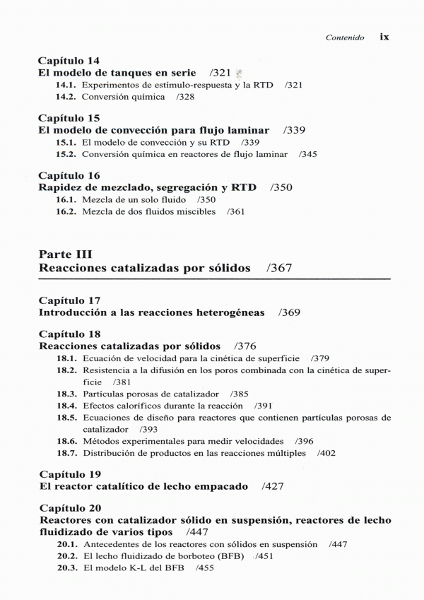 Su objetivo es el diseño y operación eficiente de los reactores químicos. Se incluyen, varios temas nuevos, como los sistemas bioquímicos, los reactores con sólidos fluidizados y los reactores gas/líquido.