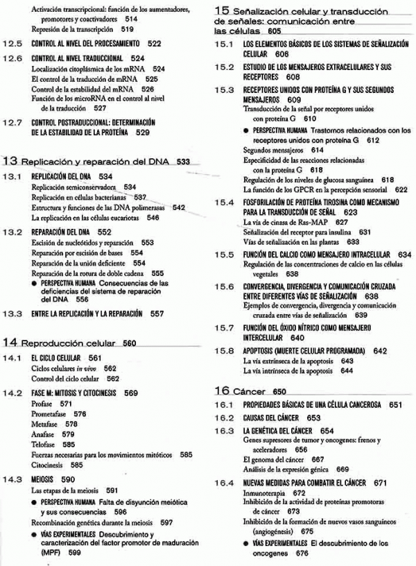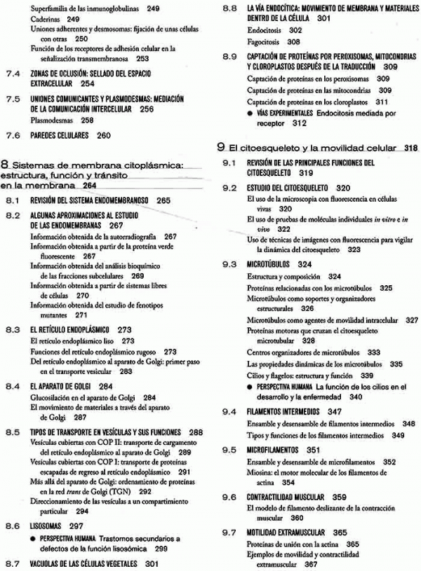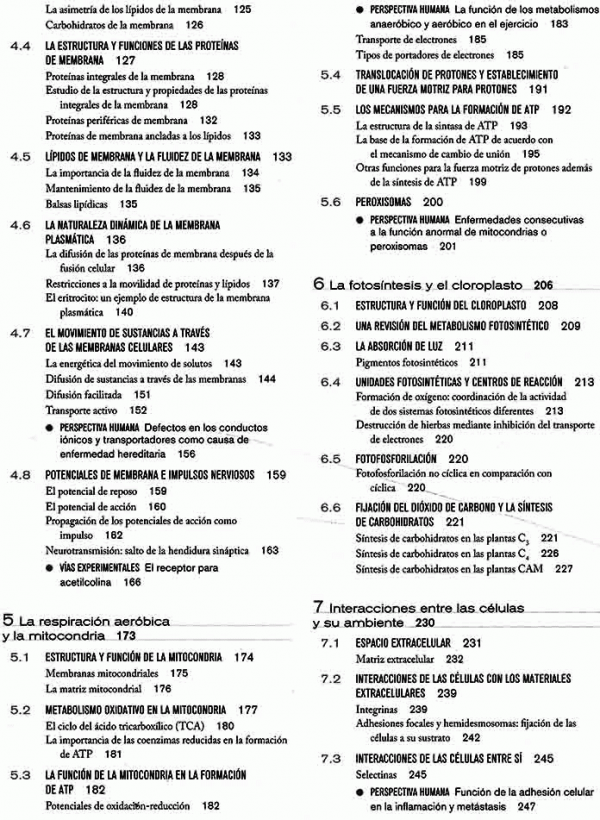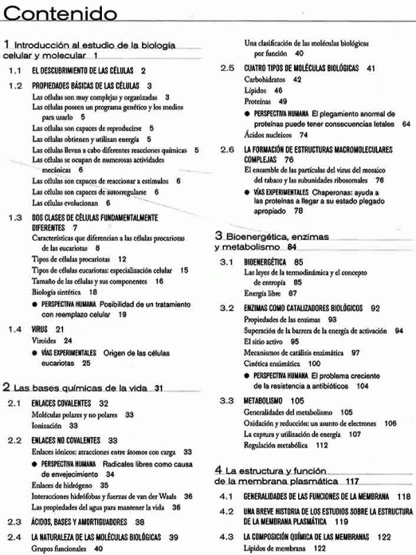 Los temas tratados son: Introducción al estudio de la biología celular; las bases químicas de la vida; energía, enzimas y metabolismo; estructura y función de la membrana plasmática; respiración aerobia y el mitocondrio...