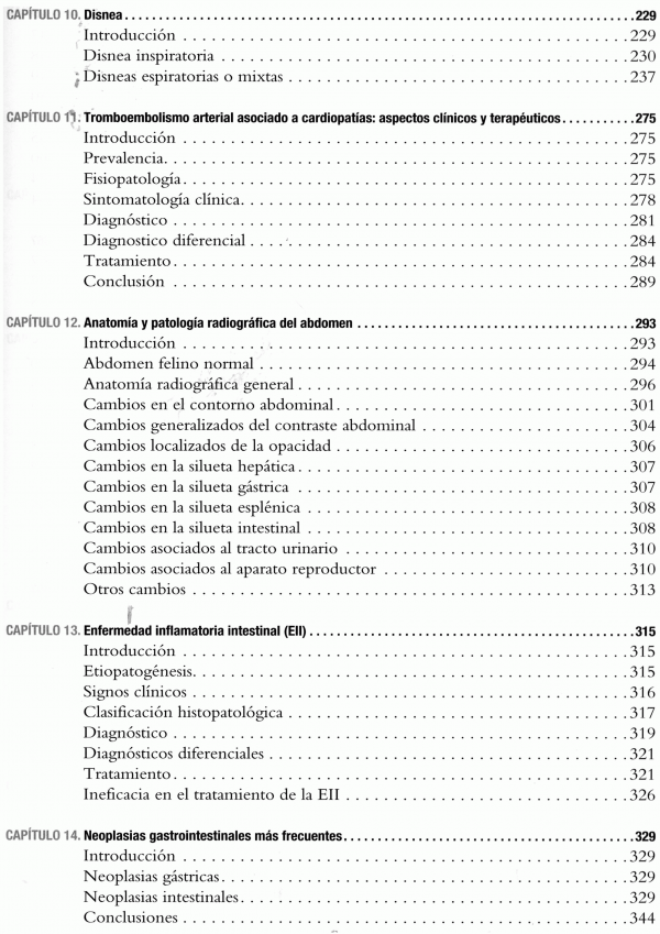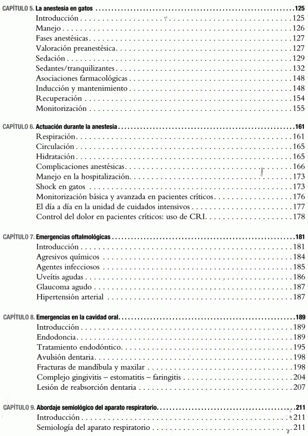 Principales diferencias clínicas entre el perro y el gato. Manejo sanitario en criadero y refugios. Utilización del laboratorio en medicina felina. Manejo clínico del dolor. La anestesia en gatos. Actuación durante la anestesia. Emergencias oftalmológicas. Emergencias en la cavidad oral. Abordaje semiológico del aparato respiratorio. Disnea. Tromboembolismo arterial asociado a cardiopatías: aspectos clínicos y terapéuticos. Anatomía y patología radiográfica del abdomen. Enfermedad inflamatoria intestinal. Neoplasias gastrointestinales más frecuentes. Pancreatitis. Actualización en el manejo de la diabetes mellitus.
