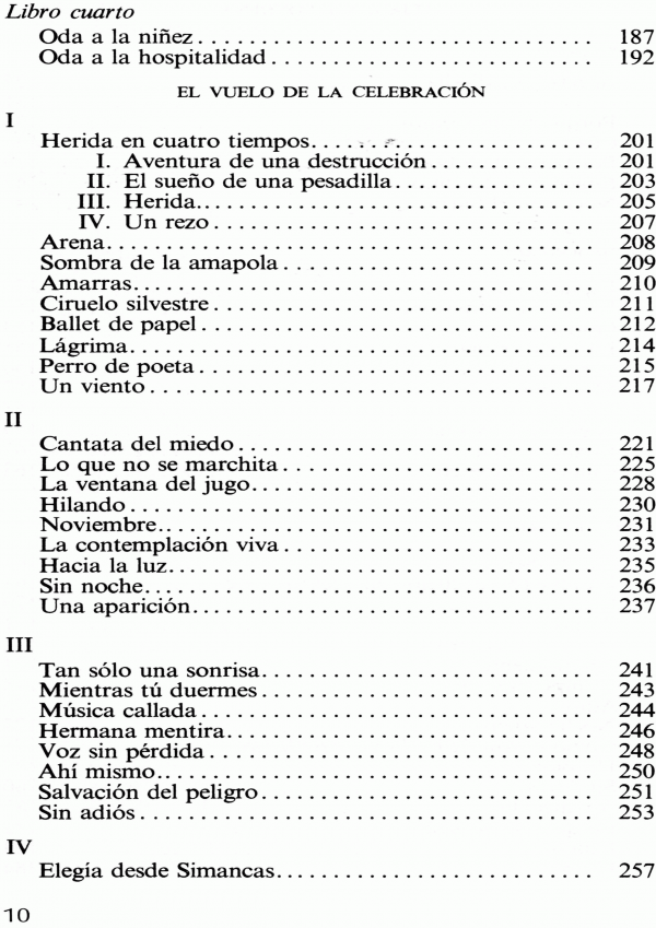 | 808.1 / Q62 Y Convertido en Lluvia de Oro osó Posarse en los Ojos de los Gatos / [Impreso] | 808.1 / R53 El Muro Transparente / [Impreso] | 808.1 / R53 Poemas / [Impreso] | 808.1 / R74 Desde mis Poemas: [Impreso] Don de la Ebriedad, Conjuros, Alianza y Condena, El Vuelo de la Celebración / | 808.1 / R84 El Precio de los Días / [Impreso] | 808.1 / S17 Poesías Completas (4): [Impreso] Largo Lamento / | 808.1 / T73 Íntima a Quijote / [Impreso] |