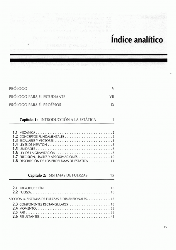 Incluye apéndice A: Momentos de inercia de una superficie / Apéndice B: Momentos de inercia de masas / Apéndice C: Temas escogidos de matemáticas / Apéndice C: Tablas útiles / Créditos de las fotografías / Índice alfabético.