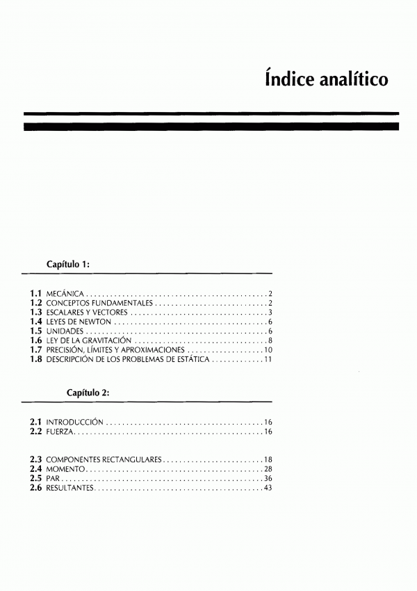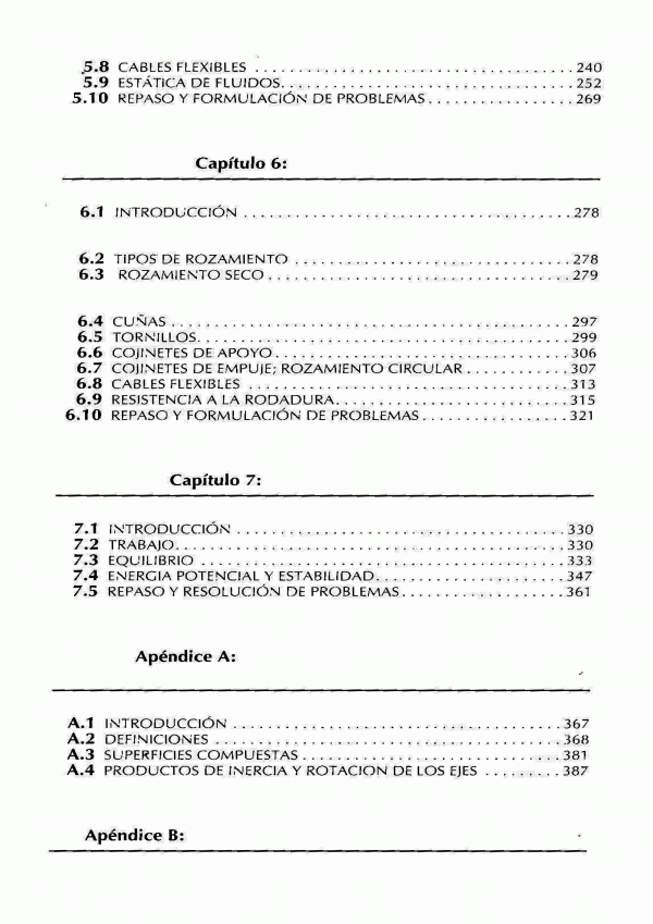 Apéndice A: Momentos de inercia de una superficie / Apéndice B: Momentos de inercia de masas / Apéndice C: Temas escogidos de matemáticas / Apéndice C: Tablas útiles / Créditos de las fotografías / índice alfabético.