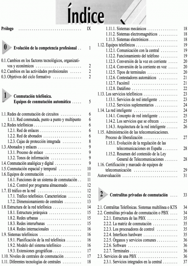 El presente libro, dirigido a los estudiantes de Formación Profesional del Ciclo Sistemas de Telecomunicaciones e Informáticos, tiene dos objetivos fundamentales: por una parte, analizar los fundamentos y la tecnología de los equipos y servicios telefónicos fijos y móviles, de manera que se adquieran los conocimientos teóricos suficientes para entender y comprender su funcionamiento y los servicios que se prestan y, por otra, el estudio práctico de los métodos para su puesta en servicio y mantenimiento, explicando las técnicas empleadas en su programación, las pruebas de aceptación y las rutinas de mantenimiento que permitan localizar un fallo y proceder a su resolución.