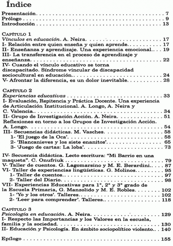 Reúne investigaciones, aportes teóricos y prácticas que dan cuenta de un pensamiento y estilo de trabajo en educación. Se refiere este texto a los valores en el proceso educativo para destacar las importancias que surgen en el encuentro con los niños. Al dirigir otra mirada se desplega la construcción de un fenómeno complejo del que todos somos participantes responsables con posibilidad de producir modificaciones cuando surge la necesidad. De esto se desprende que la manera d enseñar enseña, el modo de dirigir una escuela educa y la enseñanza y el aprendizaje se construyen entre maestro y alumno.