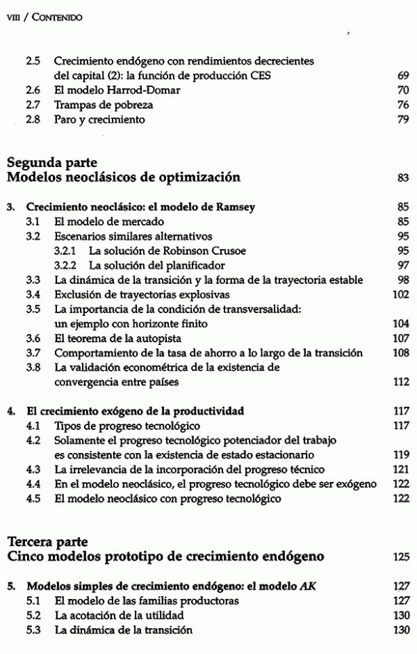 Recursos en línea: Resumen: Estas notas pretenden poner al alcance del estudiante de economía una descripción razonada del estado actual del pensamiento económico en temas de crecimiento. Se trata de los apuntes de los cursos impartidos por el profesor Sala-i-Martin en las universidades de Columbia, Harvard, Pompeu Fabra y Yale. Por su claridad, concisión y también por su rabiosa actualidad, se ha convertido en el texto de crecimiento económico más utilizado en las universidades estadounidenses en estos últimos años. La segunda edición extiende el análisis del progreso tecnológico y capital humano e incorpora la evidencia empírica descubierta en los últimos años.