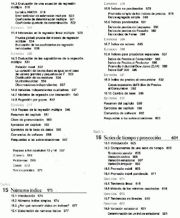 Estadística aplicada a los negocios y la economía es una obra que se ha ganado la preferencia de los estudiantes de administración, marketing, finanzas, contabilidad, economía y otros campos, por su enfoque paso a paso y por basarse en aplicaciones de negocios, que aceleran su comprensión en el estudio de las estadísticas descriptiva e inferencial. Esta 15ta edición contiene objetivos de aprendizaje más específicos, relacionados directamente con las secciones que contiene cada capítulo, mostrando un enfoque paso a paso a los estudiantes y así aumentar su desempeño, acelerar su preparación y mejorar significativamente la motivación hacia la estadística en los negocios y la economía. Además, Estadística aplicada a los negocios y la economía contiene nuevos ejemplos y ejercicios que abarcan más variables y observaciones así como el uso de los mismos en Excel 2007 y Minitab para apoyar al estudiante en su formación profesional.
