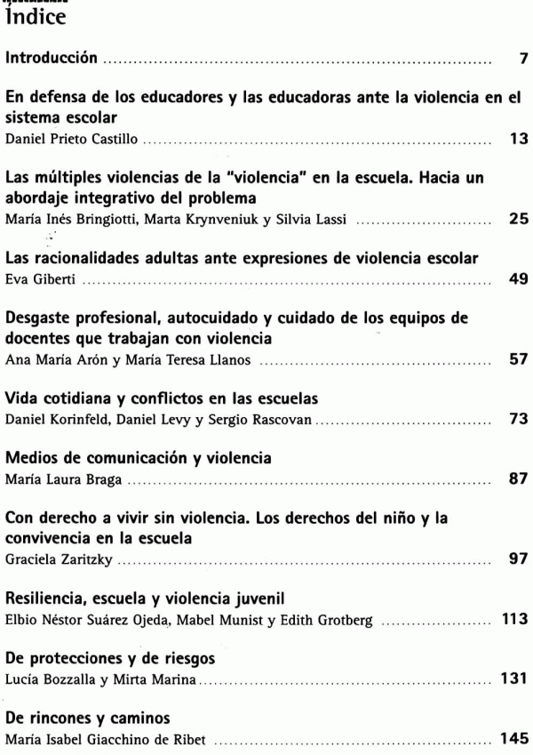 Violencia y escuela es una obra que expresa preocupaciones , reflexiones y esperanzas de la s personas que trabajan y conviven en el espacio educativo: docentes, investigadores, alumnos y familias. Todos sus artículos están conectados por rl compromiso, el involucramiento, el esfuerzo sostenido por comprender y dersandar los códigos de la violencia que atraviesan la vida en la escuela, apostando a cuidar algo tan central en la experiencia educativa como lo s la manera en que se construyen los vínculos en la trama escolar