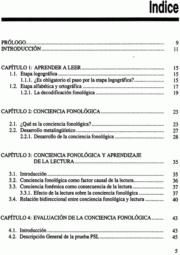 En este libro se ofrece material útil para abordar tanto la evaluación de la conciencia fonológica como su entrenamiento en un intento de contribuir y mejorar el aprendizaje de las reglas de conversión grafema-fonema.