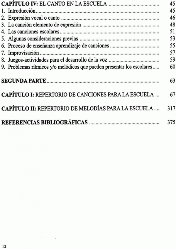 Se ha seleccionado un repertorio numeroso y variado de canciones de diferentes procedencias y dificultades de nuestro cancionero popular, de otras culturas y países, sin olvidar aquellas que han sido creadas por o para los alumnos y que se ajustan a las características adecuadas para su utilización en las etapas educativas de Infantil, Primaria y Secundaria Obligatoria.