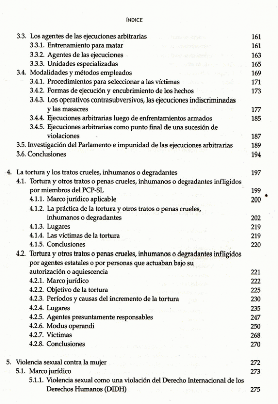 El informe de la Comité de la Verdad y Reconciliación consta de nueve tomos de análisis de la violencia vivida en el Perú entre los años 1980 y 2000 y un disco compacto con os anexos. Los nueve tomos que conforman en cuerpo del informe de organizan en los apartados siguientes: