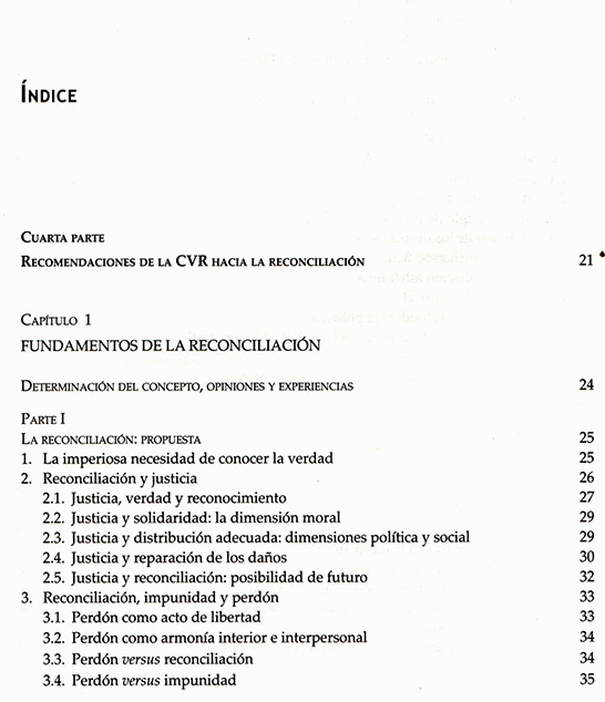 Cuarta Parte: recomendaciones de la CVR hacia a la reconciliación