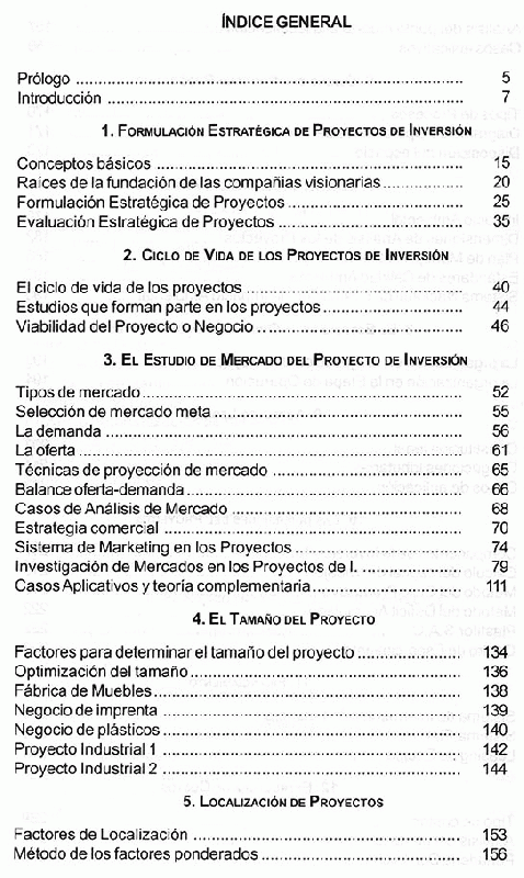 Esta obra esta desarrollada en forma clara, precisa y concisa; presenta aspectos teóricos y prácticos de formulación estratégica del proyecto, estudio de mercado, tamaño y localización de planta.