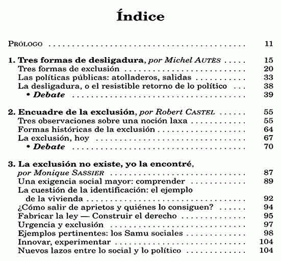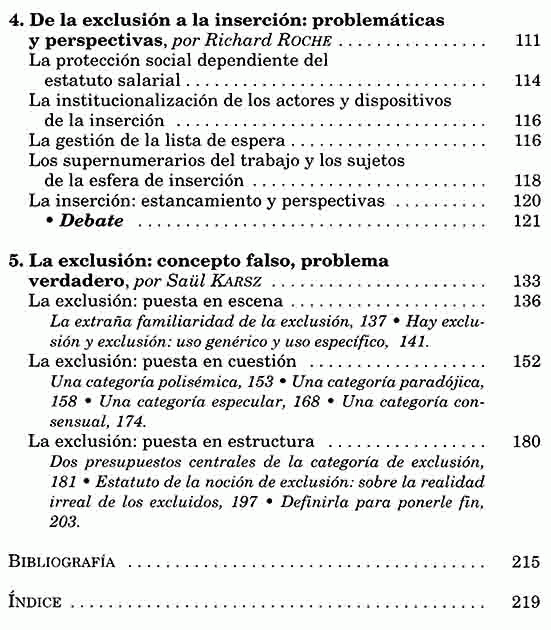 La exclusión pone en juego el destino de una cantidad creciente de sujetos particulares y de grupos sociales en términos de empleo, vivienda, salud física y mental, y ejercicio de la ciudadanía.