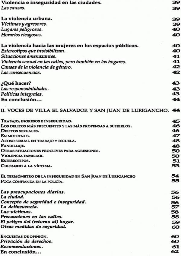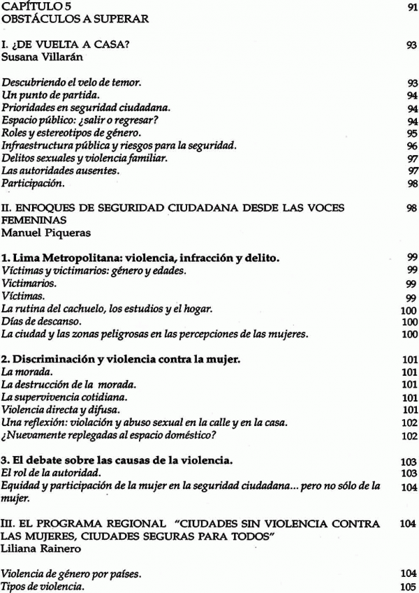 Las preocupantes indices d violencia urbana han colocado a la seguridad ciudadana como una prioridad de los gobiernos y la opinión publica en nuestro paises. Diariamente, las noticias nos traen historias de violencias y asaltos perpetrados en las calles y hasta en los taxis y otros vehiculos de transporte publico. Las autoridades vienen respondiendo con políticas policiales de corte represivo y punitivo, sin considerar las opiniones y experiencias de la mitad d la población de la s mujeres.