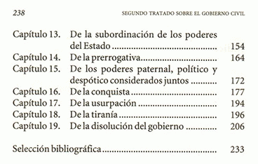 La teoría política de John Locke (1632-1704) ha influido notablemente en la formación de la ideología liberal moderna. Mientras que el "Primer Tratado" es una larga y elaborada refutación de la teoría del derecho divino de los reyes tal y como fue concebida por sir Robert Filmer en Patriarca -también en esta colección-, el "Segundo Tratado sobre el Gobierno Civil" -"Un ensayo acerca del verdadero origen, alcance y fin del Gobierno Civil"- aborda temas tan importantes como el origen de la legitimidad de los gobiernos, la propiedad o la sociedad civil, aunque por encima de todo fue un trabajo destinado a reafirmar el derecho de resistencia a una autoridad injusta y, en última instancia, el derecho a hacer una revolución. La presente edición ha utilizado como referencia la edición póstuma de 1764.