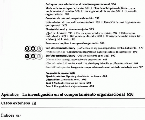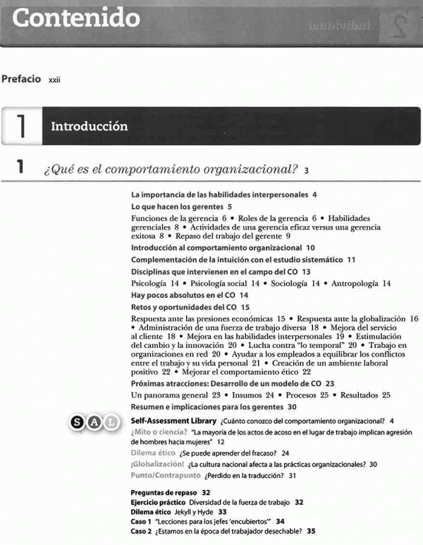 Esta edición continúa la tradición de hacer que las investigaciones actuales e importantes dentro del campo del comportamiento organizacional cobren vida para los estudiantes. Al mismo tiempo que mantiene sus características distintivas, redacción clara, contenido vanguardista y pedagogía atractiva. Esta es una de las revisiones más detalladas y profundas de comportamiento organizacional en la que además de conservar el material esencial, esta nueva edición refleja la investigación y los temas más importantes que enfrentan las organizaciones, los gerentes y los trabajadores. Esta obra está estructurada en 4 partes. La primera dedicada a poner en contexto a la disciplina de estudio. La segunda parte que se ocupa de los aspectos de los individuos en las organizaciones y dando paso a la tercera parte para abordar los factores del comportamiento grupal de los individuos, y finaliza con un cuarto bloque que integra los sistemas organizacionales.