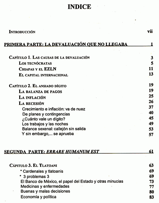 "Evaluación de la devaluación del peso mexicano en 1994. Enfatiza los factores que conducen a la devaluación y el impacto posterior en la economía y los niveles de vida. El estudio concluye con una evaluación del plan de emergencia implementado después de la devaluación" - Manual de Estudios Latinoamericanos,