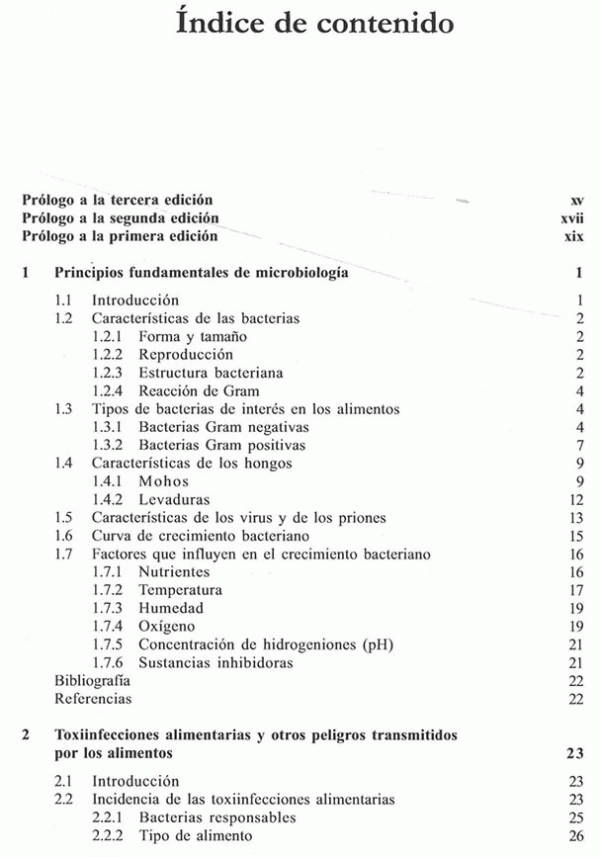 La microbiologia de los alimentos es una ciencia fascinante y retadora. Es también muy exigente ya que se mueve en un mar, constantemente cambiante, de normas, reglamentos y maquinaria. La preocupación de la población por la seguridad alimentaria la lleva a valorar excesivamente ciertos riesgos al mismo tiempo que se despreocupa de las practicas higiénicas normales de los fabricantes de alimentos. Esta tercera edición pretende poner al día a quienes les preocupa la producción higiénica de los alimentos en aspectos clave del HACCP, de la higiene alimentaria y de la metodología analítica de detección de microorganismos.Hemos incluido también algunas novedades como la nueva variante de la CJD (relacionada con las vacas locas que padecen BSE), que en el momento de escribir este libro ha producido la muerte de 20 personas pero que debido a lo incierto de su fase de incubación podría ser un problema mucho mas serio.En el Reino Unido los medios de comunicación han prestado tanta atención al brote provocado por Escherichia coli 001157: H7 que el gobierno ha iniciado una investigación a gran escala y ha recomendado que se le aplique el HACCP.por esto lo incluimos en esta edición. Se habla mucho de la aplicación del HACCP para producir alimentos higienicamente pero su implementacion, sobre todo en pequeñas empresas, es difícil. Este libro no pretende ensenar como hacer el HACCP ya que lo hacen muchos de los otros libros que se encuentran a la venta. Sin embargo, intenta proporcionar a este fin un fondo de conocimientos mas completo teniendo en cuenta una perspectiva mundial.El nuevo titulo del libro refleja su mayor énfasis en el tratamiento de alguna de sus materias