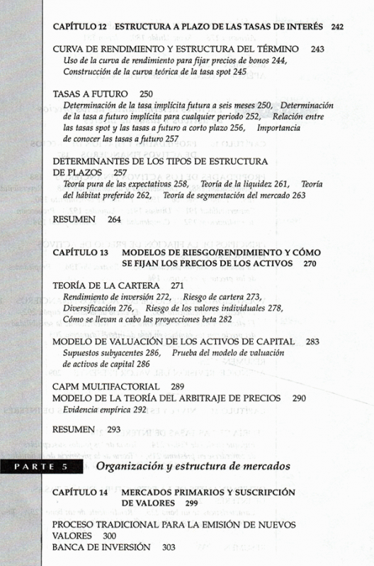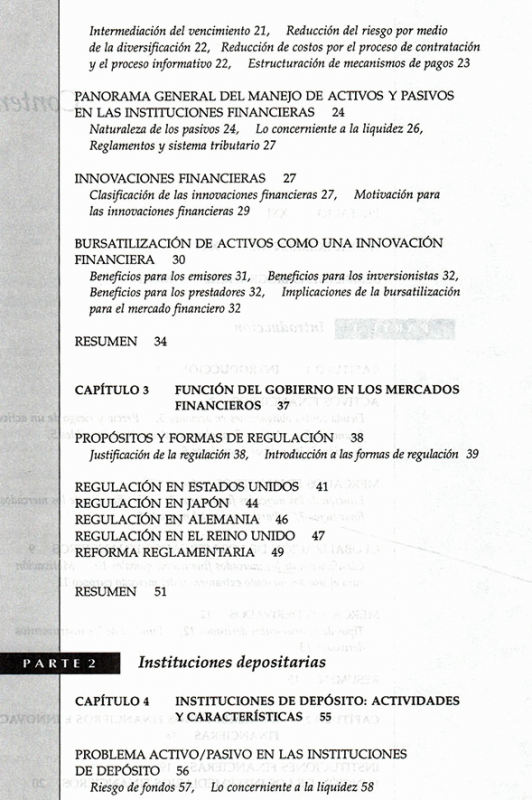 Este libro escrito por autores de gran prestigio ofrece una investigación de los sucesos que marcan hitos en los mercados e instituciones financieras de todo el mundo, centrándose en las tendencias y prácticas en vigor: innovaciones, globalización y desregularización. Además, se explica de qué manera administran sus activos y pasivos las instituciones financieras.