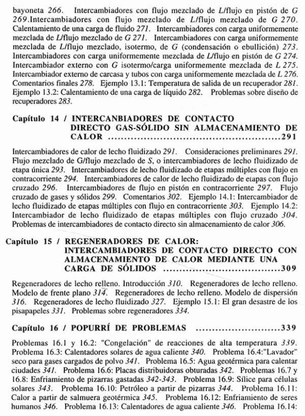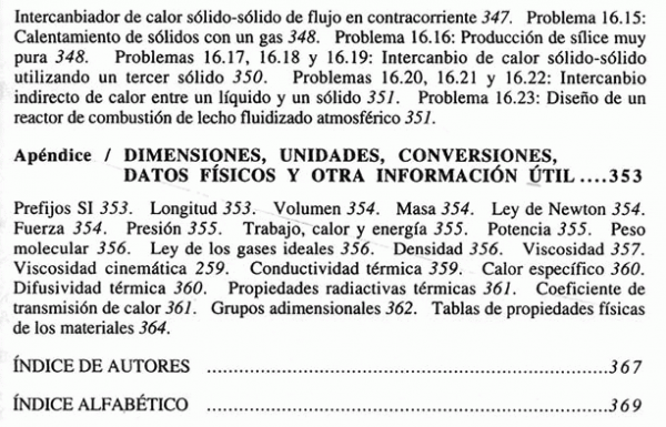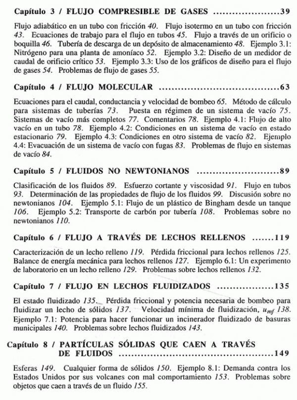 Flujo de fluidos y mesclas, ecuaciones basicas para el flujo de fluidos, flujo de fluidos newtorianos incomprensibles en tubos, flujo comprensible de gases, flujo molecular, fluidos no newtonianos, flujo a traves de lechos rellenos, flujo con lechos fluidizados, particulas solidas que caen a través de fluidos, intercambio de calor, los tres mecanismos de transmisión de calor: conduccion, conveccion y radiación, combinación de resistencia de transmisión de calor, calentamiento y enfriamiento de objeto solidos envasados no estacionario, introducción a los intercambiadores de calor recuperadores: intercambiadores a través de la pared sin almacenamiento de calor, intercambiadores de contacto directo Gas-Solido sin almacenamiento de calor, regeneradores de calor: intercambiadores de contacto directo con carga de sólidos, popurri de problemas, dimensiones, dimensiones, unidades, conversiones, datos físicos y otra información útil.