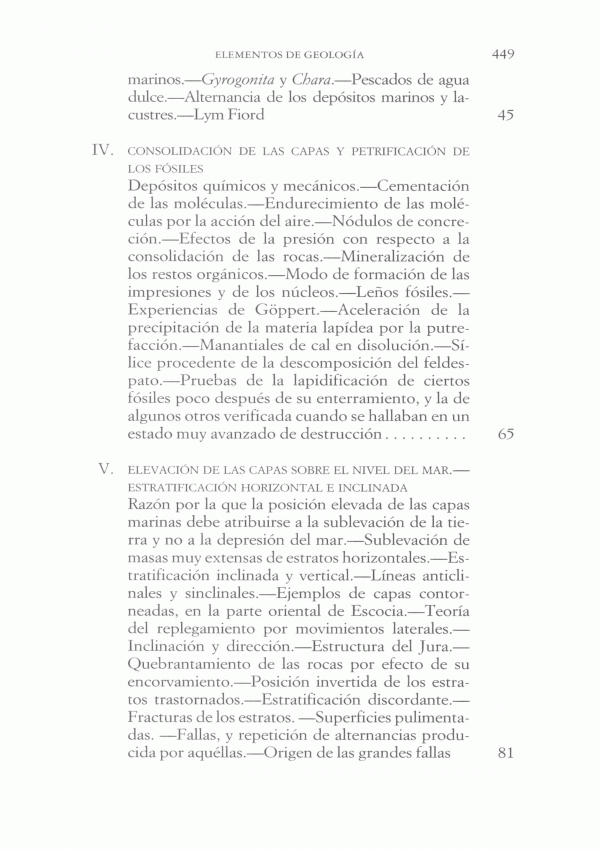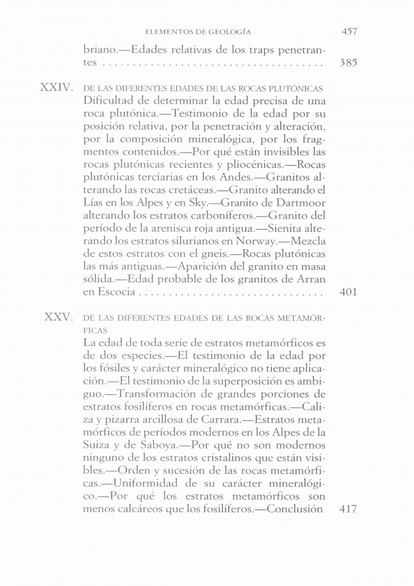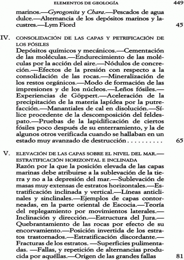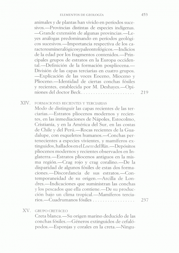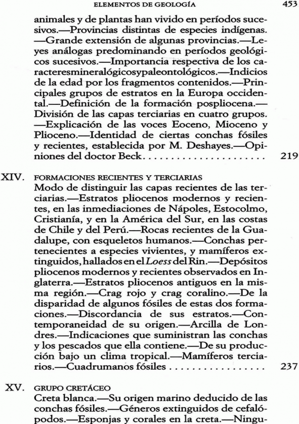 En agosto de 1838 Lyell publicó Elementos de Geología, que acabó convirtiéndose en un trabajo seminal sobre la geología estratigráfica y paleontológica. Tuvo seis ediciones al largo de la vida de Lyell. Lyell está considerado también como uno de los fundadores de la estratigrafía y elaboró un método para clasificar los estratos mediante el estudio de los antiguos estratos marinos de Europa occidental. Se dio cuenta de que los estratos marinos más cercanos a la superficie, que son los más recientes, contenían muchas especies de moluscos con caparazón que perviven actualmente en el mar. Por otra parte, los estratos más antiguos y profundos contenían cada vez menos fósiles de las especies vivientes, lo que le llevó a dividir el tiempo geológico en escalas temporales más amplias, basándose en los porcentajes de decrecimiento de las especies modernas. Dividió, el Terciario en tres épocas: Eoceno, Mioceno y Plioceno, nomenclatura que aún se conserva hoy en día. Fue el primero en apuntar que la especie humana debía ser más antigua del que apuntaban las teorías de su época y, además, concluyó que las rocas más antiguas existentes en la Tierra, databan de 240 millones de años.