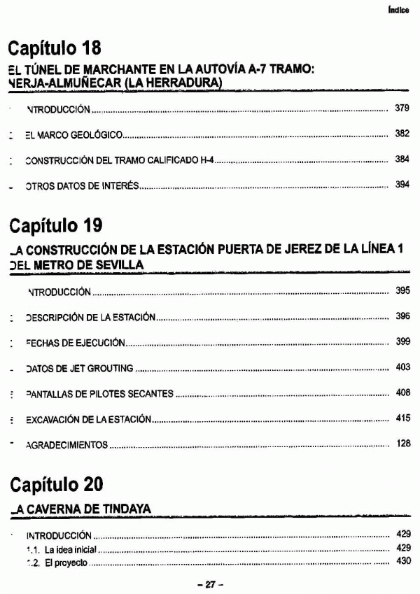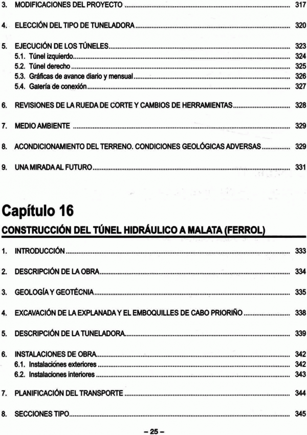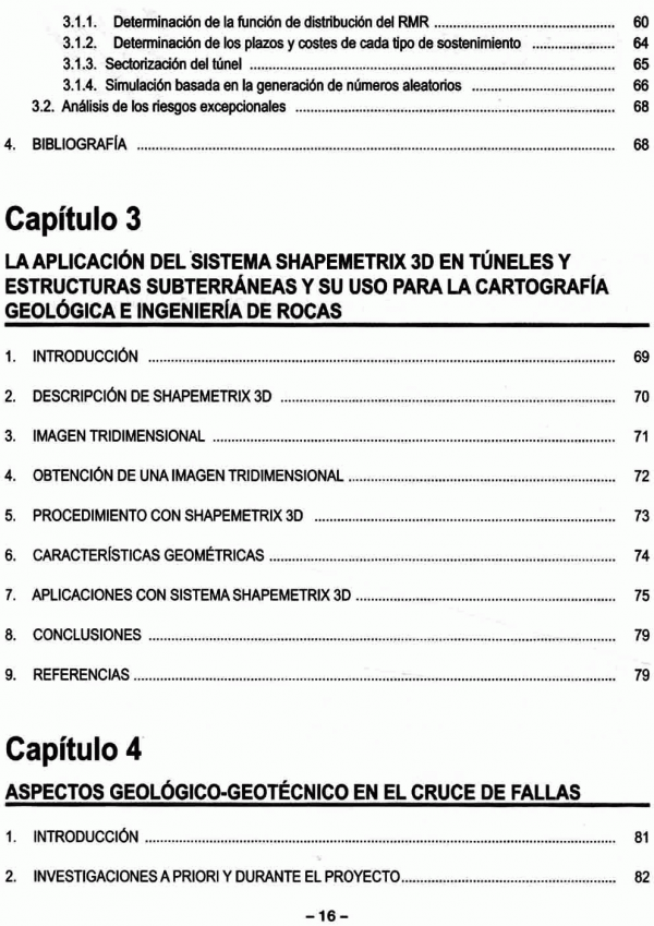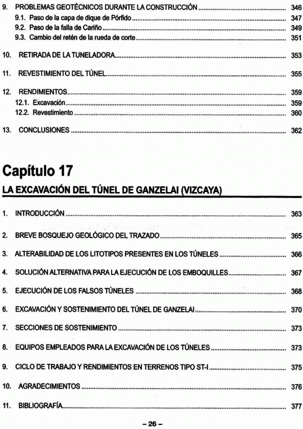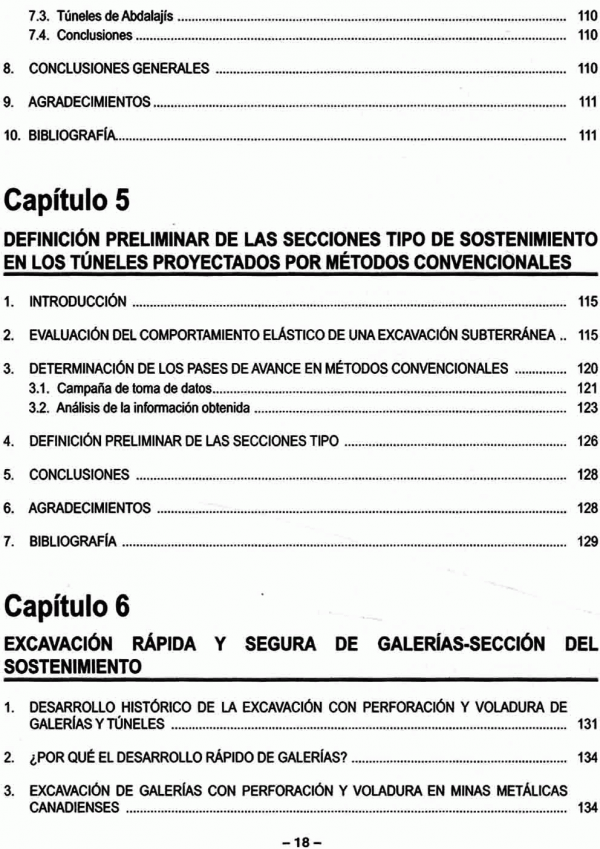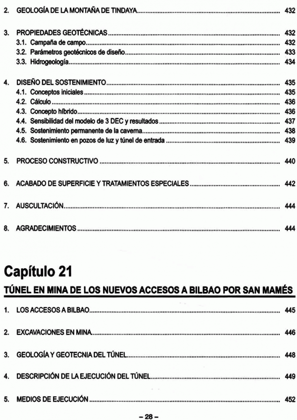 Excavación de la central subterránea de Lam Ta Khong en Tailandia.- Túneles urbanos perforados en roca: el caso del metro de Bilbao. PARA EL TOMO 19: Caracterización de rocas sensibles al agua. Aplicación a la excavación de túneles La abrasidad de los terrenos. Un parámetro básico para la estimación de los costos de los túneles construidos con la tuneladora Técnicas constructivas en el cruce de fallas. Nuevas técnicas de gestión geotécnica en los túneles urbanos.